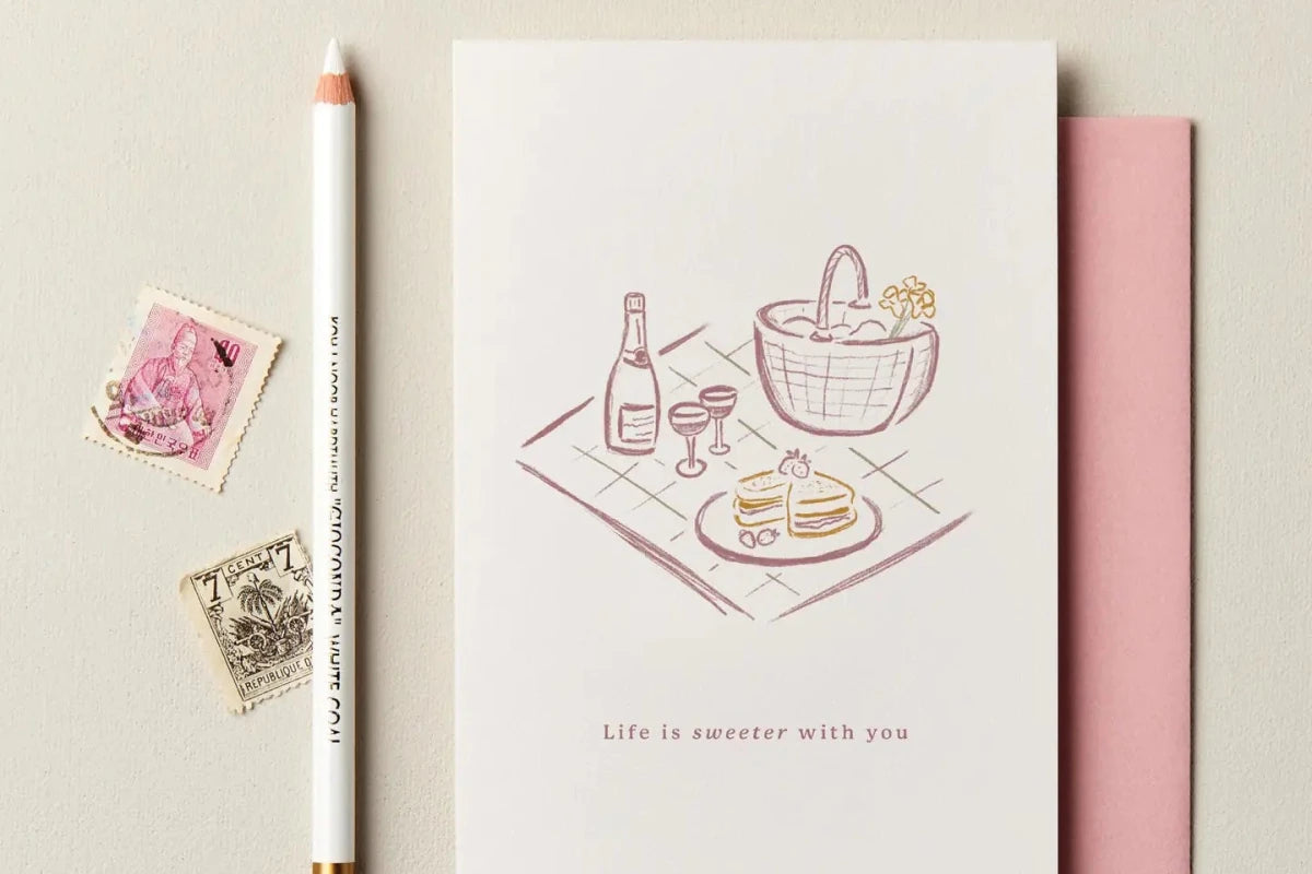 Chic, modern illustrated greetings cards by Ink & Bloom, printed in the UK on luxurious 300gsm embossed card. Each design is plastic-free, fully recyclable, and blank inside for your own message.