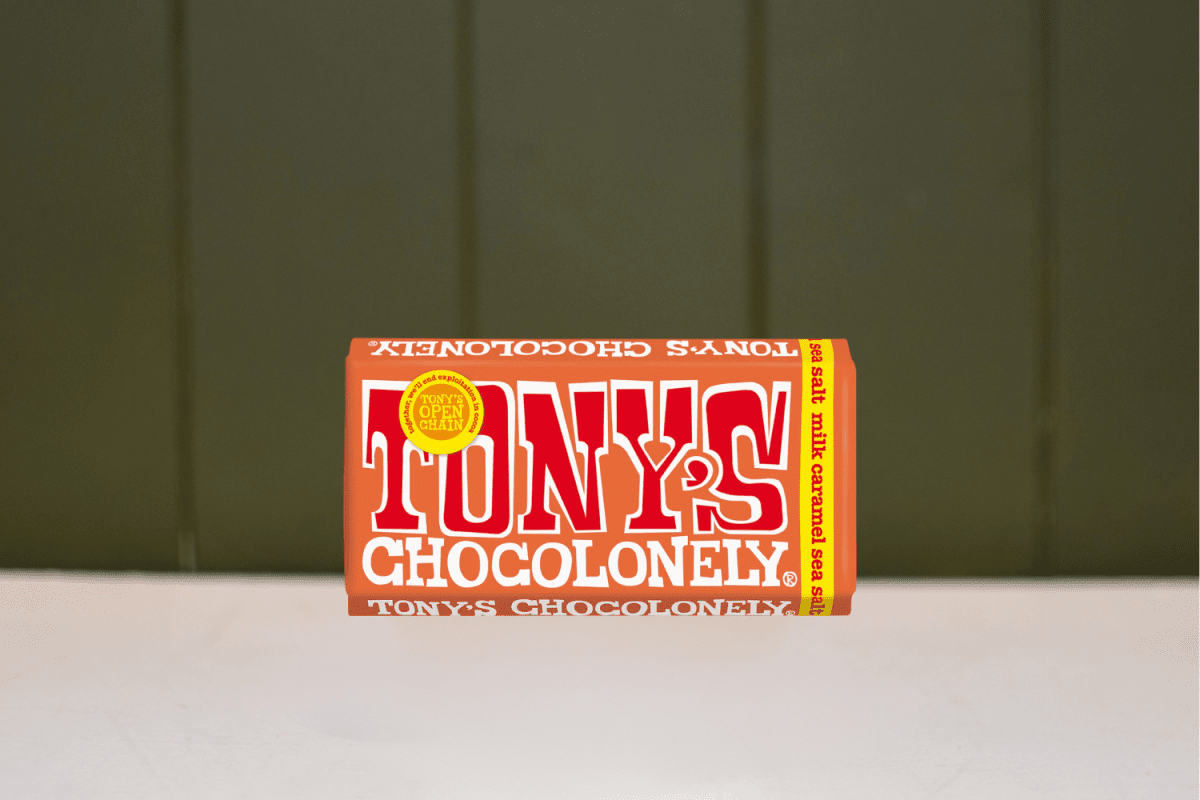 Iconic Tony’s combo: crunchy caramel pieces with a pinch of sea salt in creamy milk chocolate.