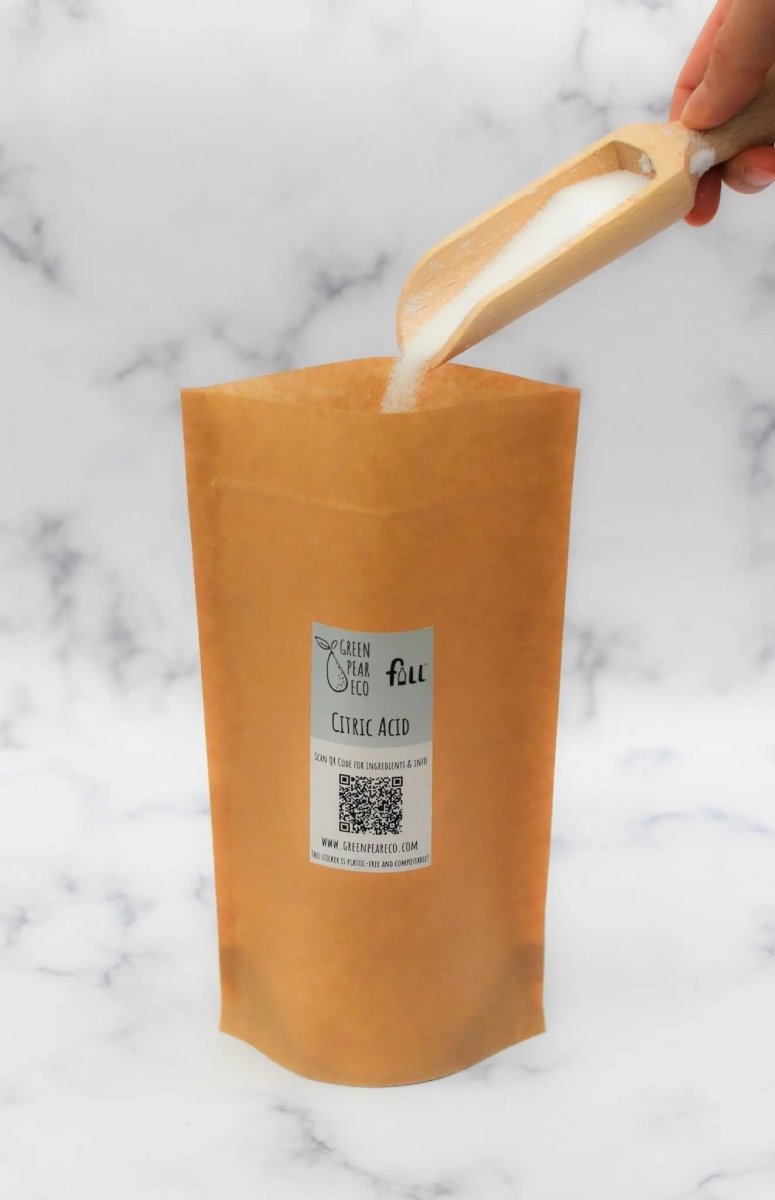 100% pure citric acid delivered nationwide in a compostable zip-lock pouch - a natural, chemical-free way to tackle limescale in kettles, toilets and bathrooms.