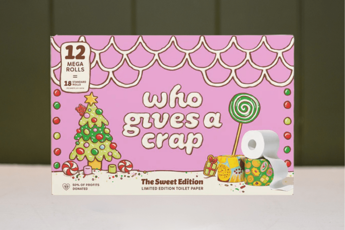12 rolls of Who Gives A Crap limited edition festive toilet tissue. Each roll is: